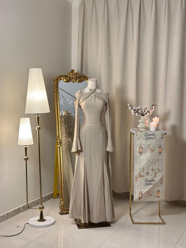 تألقي بإطلالة راقية ومميزة مع هذه الجلابية البيج التي تجمع بين البساطة والفخامة. تتميز بقصة طويلة وانسيابية تعزز جمال القوام، مع تفاصيل أنيقة عند الأكتاف والأكمام تضفي لمسة من الرقي والجمال العصري.