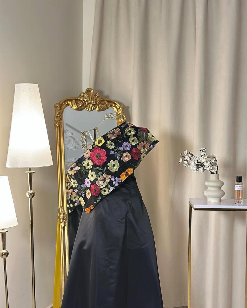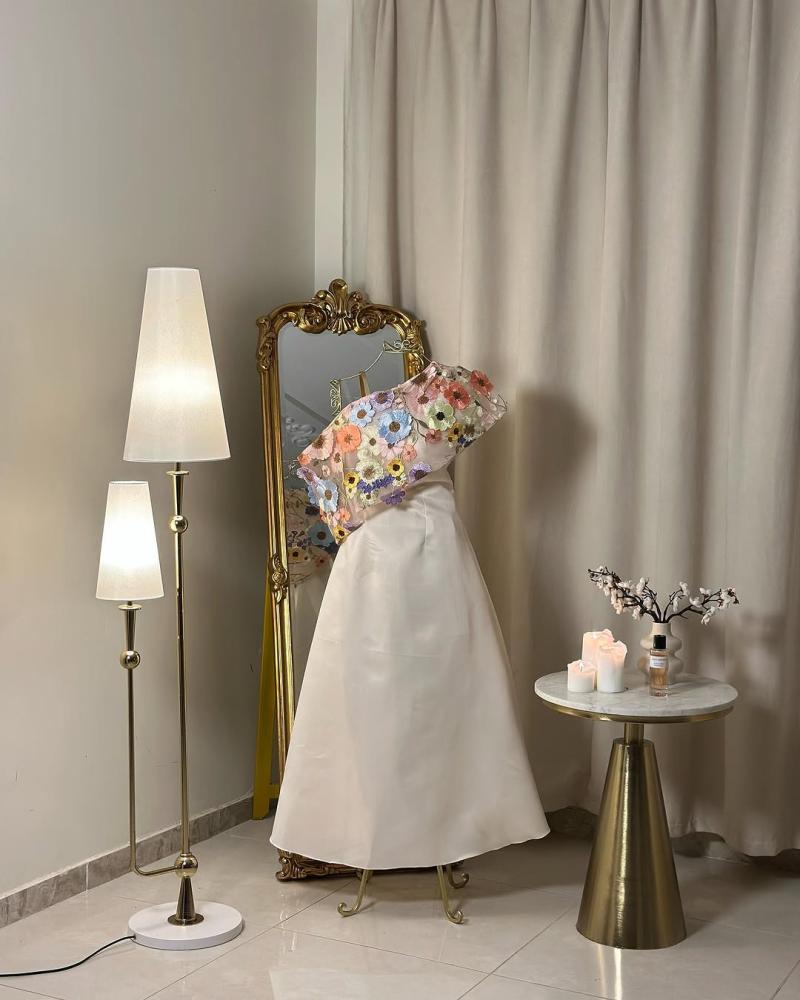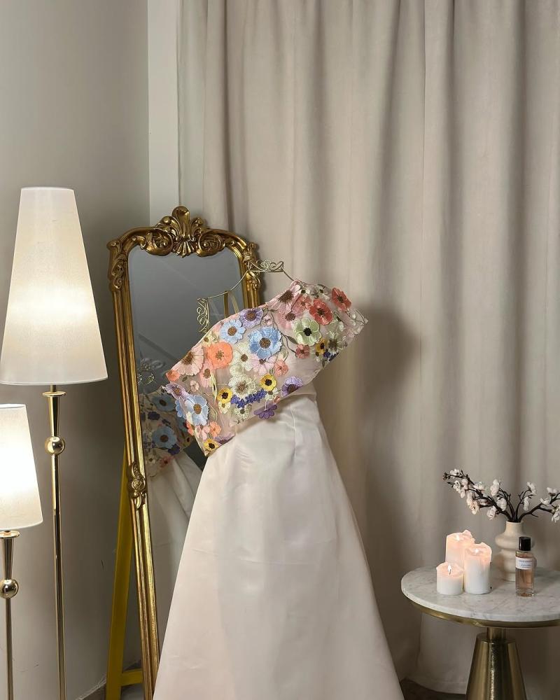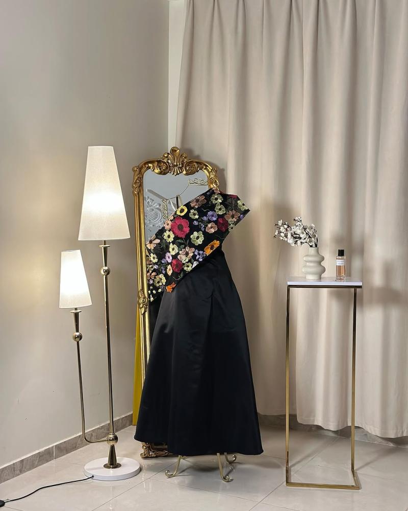 إطلالة ساحرة تنبض بالأنوثة والفخامة، يتميز هذا الفستان بتصميم فريد يجمع بين البساطة والرقي. يأتي بقصة انسيابية ناعمة، مع لمسة عصرية مبتكرة على الكتف، حيث يزينه قماش مطرز بالورود الملونة ليضفي عليه طابعًا أنثويًا جذابًا. تصميمه الفريد يجعله مثاليًا لكل من تبحث عن إطلالة مميزة وأنيقة.