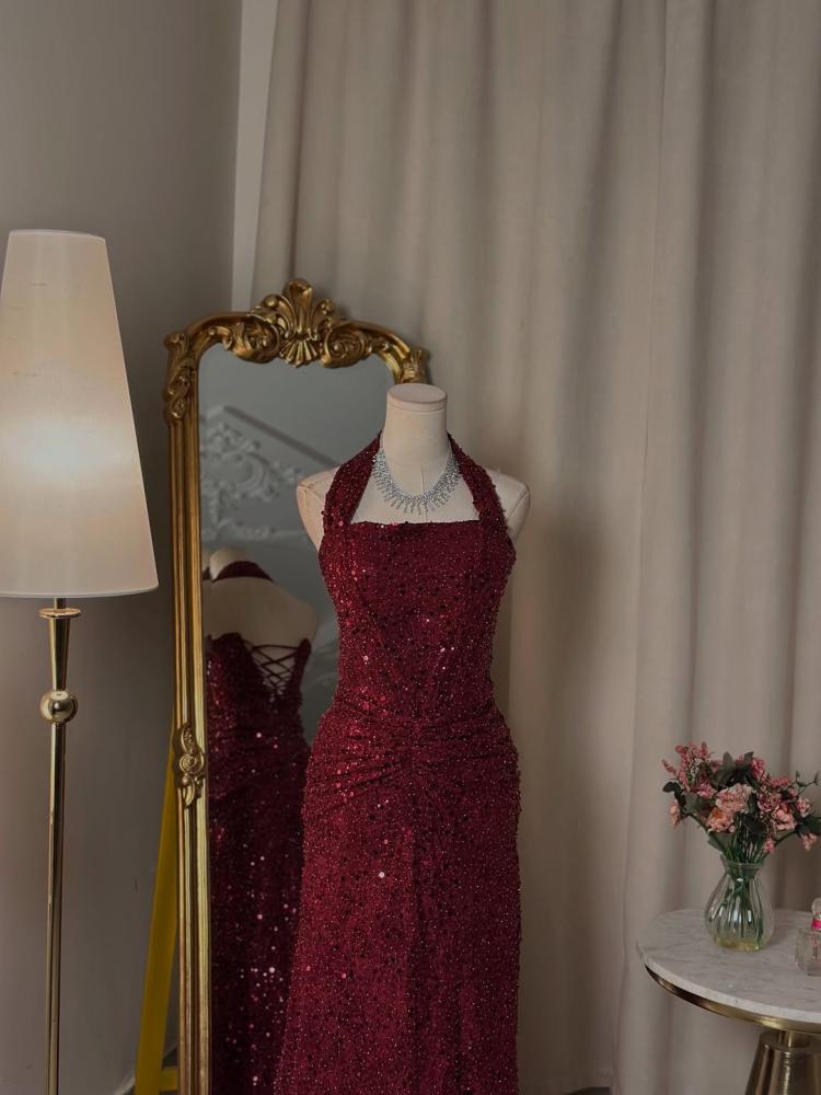 ✨ فستان سهرة برغندي لامع بتصميم ساحر ✨